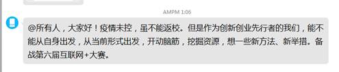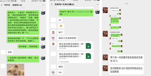 为了在疫情防控期间更好地服务开放实验室和创新创业团队,做好创新创业教育工作,庄檬主任要求全体实践教师和创业导师,第一时间将开放实验室招新通知发放到对应的员工群,并对项目成员入住团队进行“地毯式”排查,确保入驻项目团队成员不离家、不返校,有武汉等地接触史的成员,务必做好自我隔离和身体情况监测,保护好自己及家人。