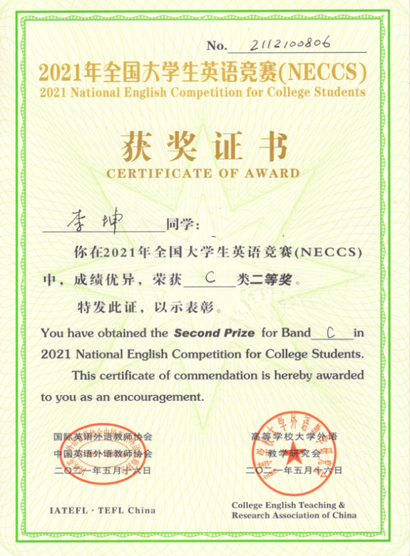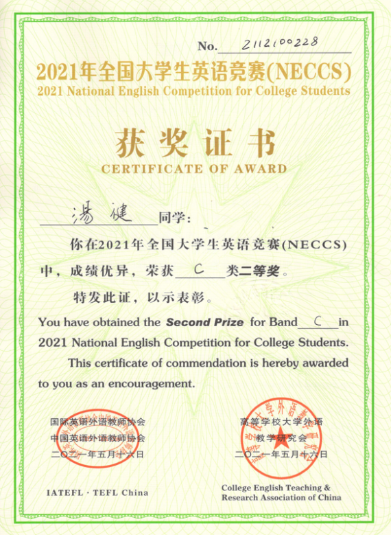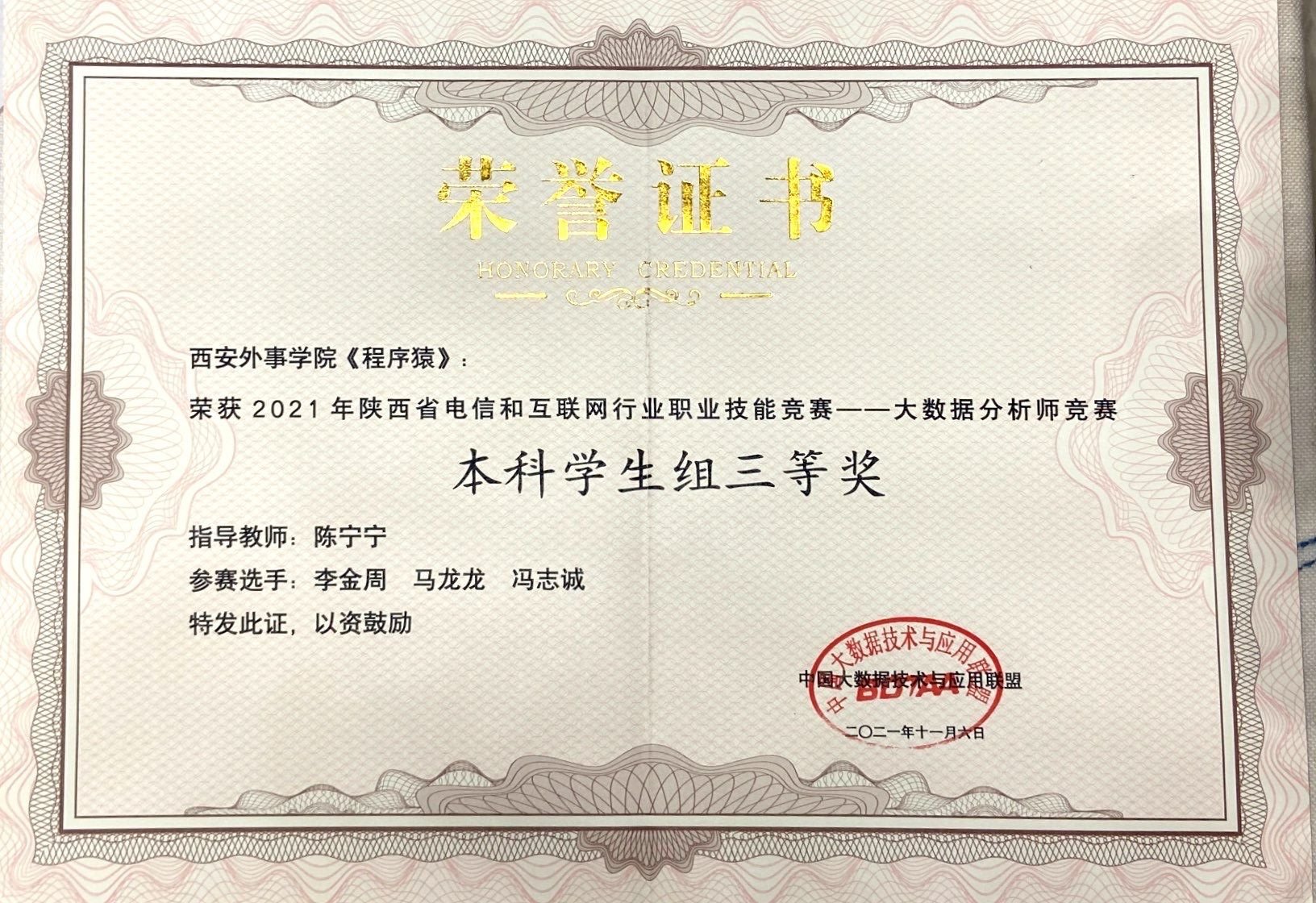 5月,全国老员工英语竞赛陕西赛区成绩揭晓,由宗亚妮、陈娟老师指导的数据科学与大数据技术专业学子李坤、汤健荣获C类二等奖,王慧老师指导的物联网工程专业学子徐琴荣获C类三等奖。