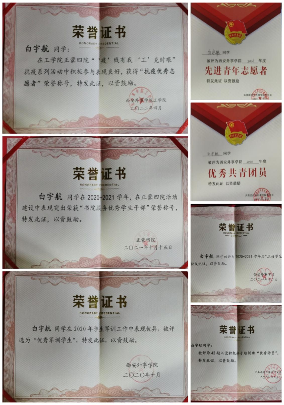 在学习方面,他上课认真听讲,课后及时完成作业,做到认真预习、复习两个方面一起抓,积极阅读各种书籍资料和学术刊物来扩大自己的知识面。始终有一种动力促使着他进步,促使着他走向成熟,融入社会,肩负起历史和时代赋予我们神圣的使命。