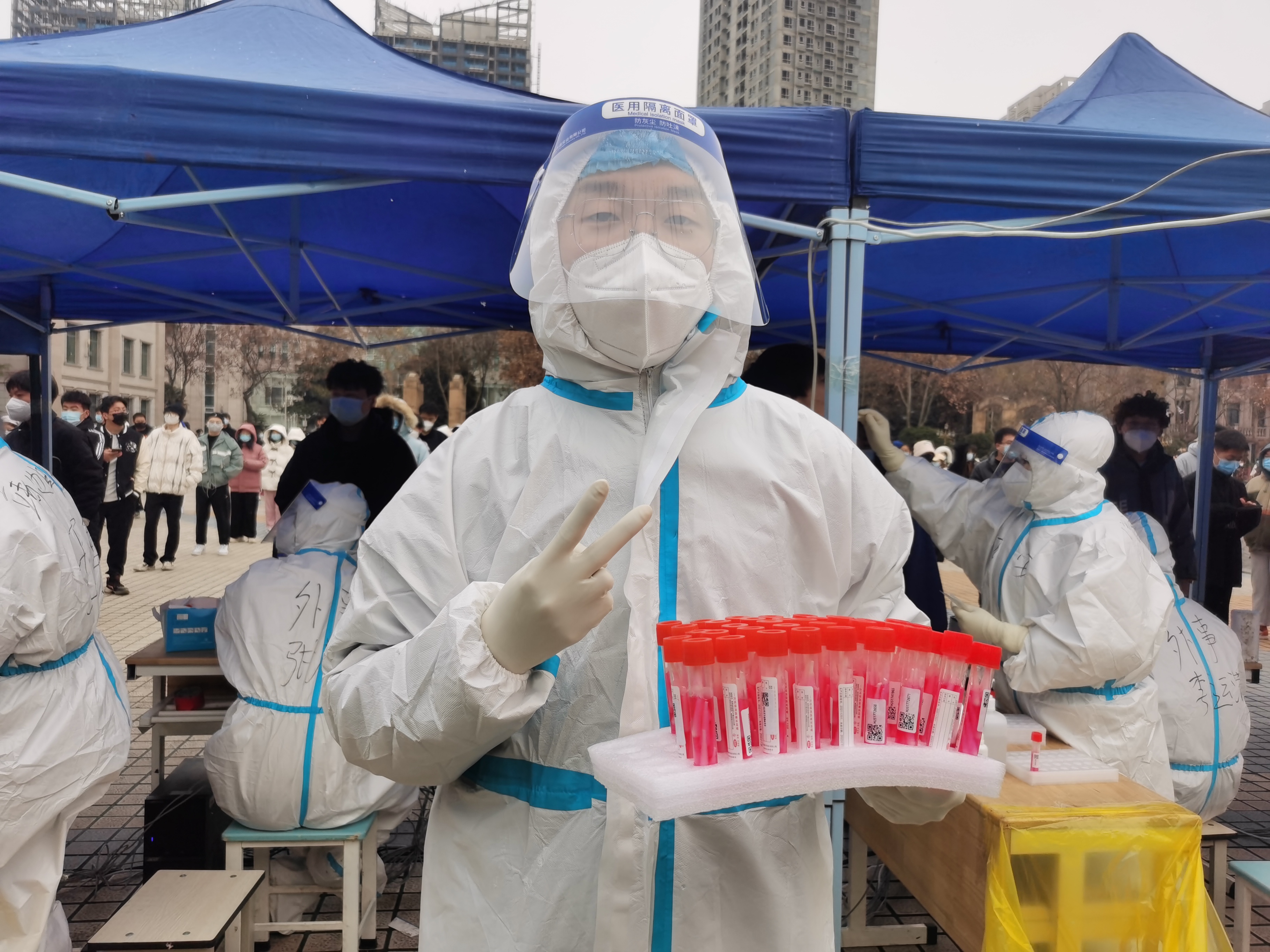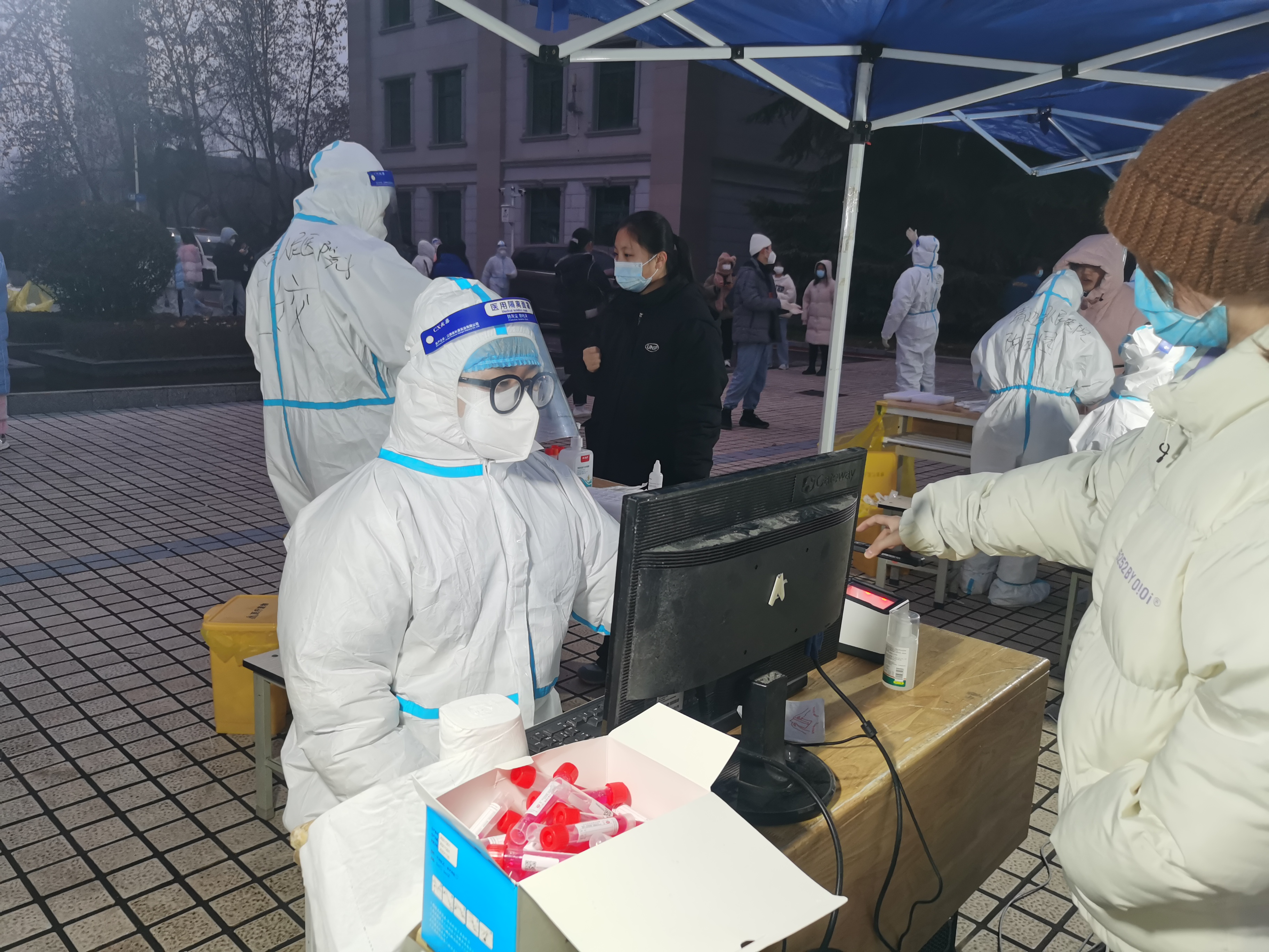 辛丑岁末,新冠病毒在西安肆虐。德信体育官网积极响应公司号召,德信体育官网员工志愿者迅速加入了这场疫情防控阻击战,冲在抗疫一线。25日,德信体育官网员工与德信体育官网员工干部组成的疫情防控队伍在鱼化龙广场协助医护人员完成采样。