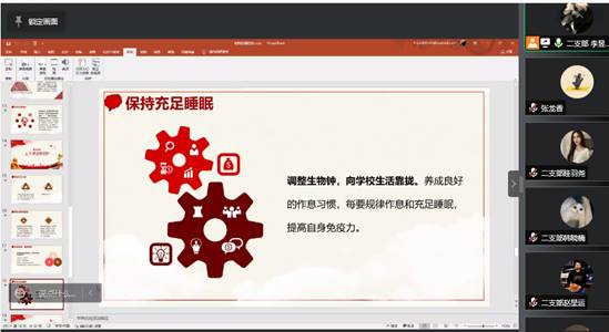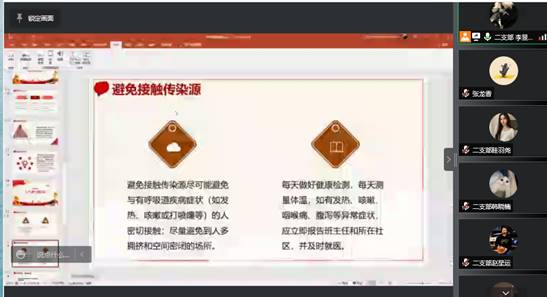 接着,积极分子刘世洋和眭羽尧同学向大家讲述校园防控指南,告诉同学们在志愿活动中如何防控及自我保护,公司属于人员密集的地方,应保持良好的卫生习惯、宿舍环境整洁和身体营养均衡。