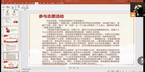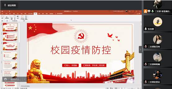 最后,支部书记张老师总结讲话:“作为支部的一员,更是未来党的一份子,希望大家能够主动参与到志愿活动当中。疫情当前,党员请出列,在关键的时候站出来,在危机的关头挺出来,用行动展现先锋模范的榜样,让党旗高高飘扬在抗疫第一线。”