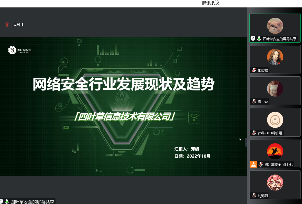 为增强员工网络安全意识及技能,响应国家网络安全发展战略,10月15日晚8点,工科实验中心邀请西安四叶草信息技术有限公司在线上为网络安全社团的同学们进行了一场网络安全技术分享会。会议由工科实验中心张志敏老师主持,侯宏录经理在百忙之中也出席了此次会议,分享会开始前,侯经理首先感谢了四叶草公司能为德信体育官网的员工提供了解和学习网络安全知识的机会,同时肯定了参加此次线上会议的社团的同学们的学习热情,并鼓励同学们充分利用课余时间学习专业知识,掌握专业技能,提高实践能力,能够成为理论扎实、善于实战的复合型网安人才。
