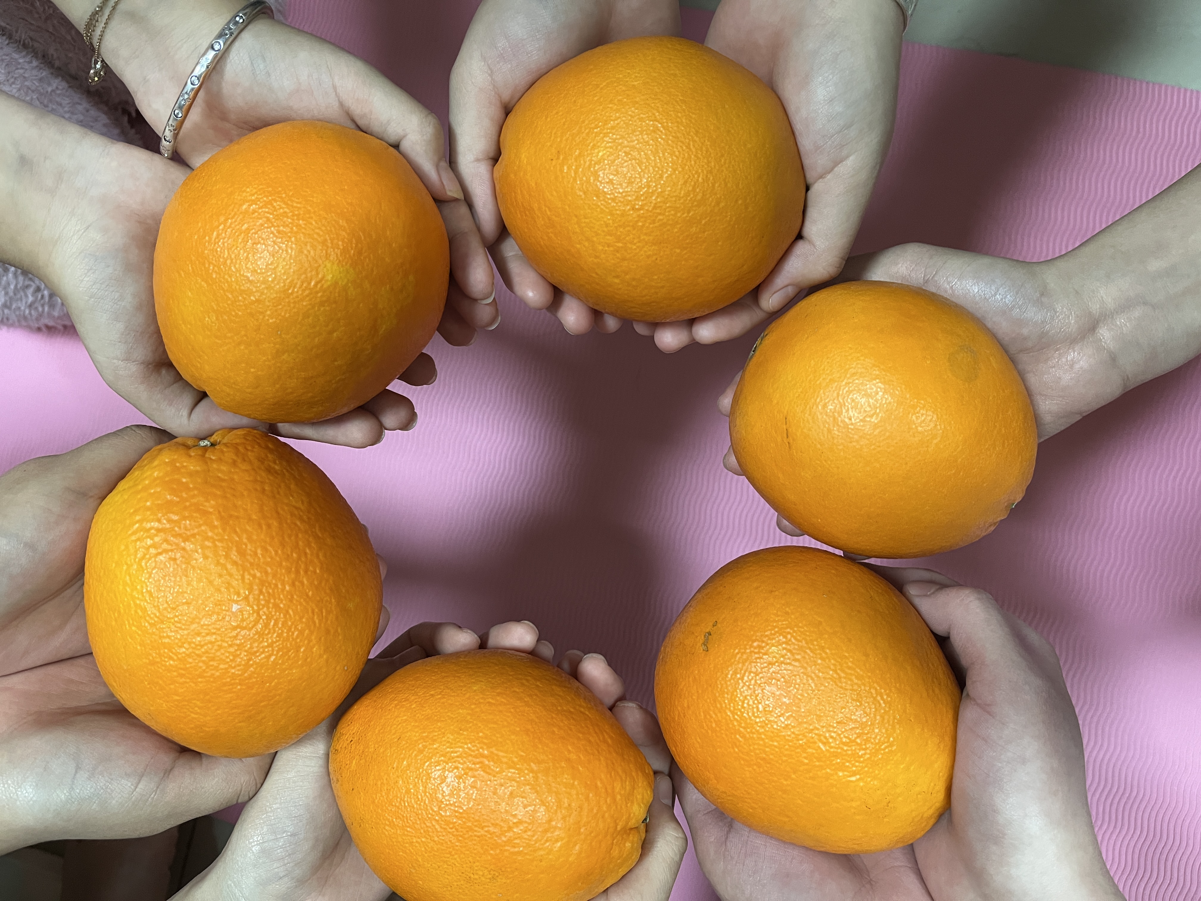 女生宿舍里各位舍长为大家贴心准备了橙子,班长还为班级同学准备了各种零食。