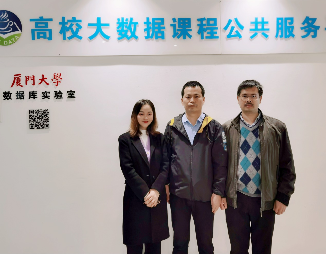 为提高混合式教学效果,加快推进公司新工科建设,12月14日上午,德信体育官网苗壮老师在参加“2020全国电子功能材料与器件学术研讨会”的空闲时间,前往厦门大学数据库实验室同林子雨和夏小红老师进行教学交流。