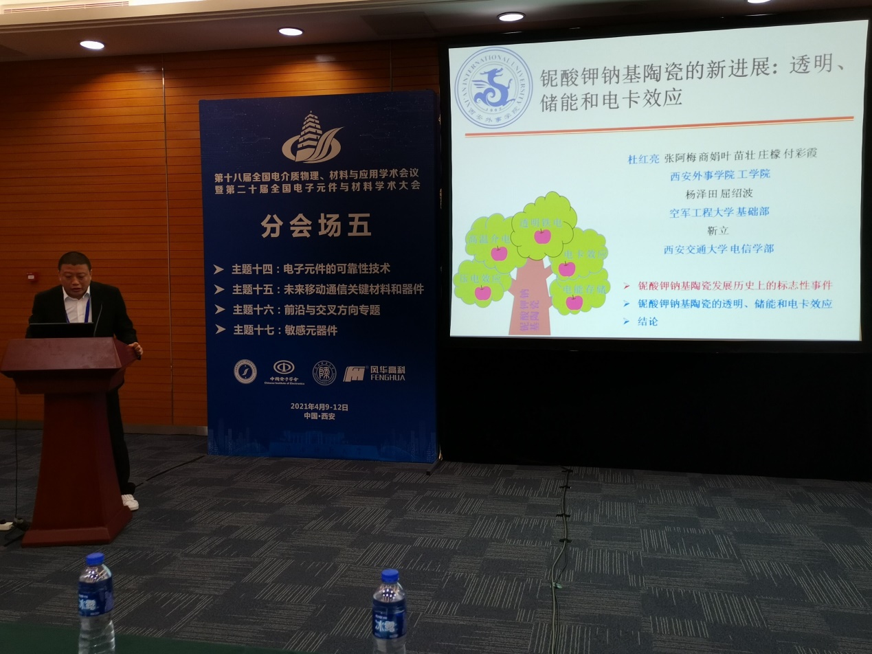 4月9日至11日,由中国物理学会电介质物理专业委员会和中国电子学会元件分会联合主办“第十八届全国电介质物理、材料与应用学术会议”暨“第二十届全国电子元件与材料学术大会”在曲江国际会议中心召开,公司多功能电子信息材料创新团队负责人杜红亮教授代表德信体育做特邀报告。
