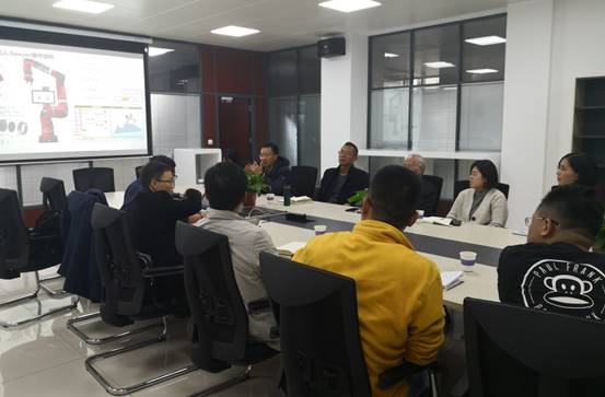 首先,湖南瑞森可机器人科技有限公司杨帅副总裁对公司做了简单介绍并说明目前机器人发展的相关趋势。接着,由该公司技术总监周文中先生作了题为“智能机器人技术研究与应用服务专家”的报告,针对智能机器人技术研究及为其他高校提供完整的机器人实验室建设方案做了详细的阐述,并提出了“一站式校企专业协同建设服务”方案。接着,校企双方展开热烈的讨论,学科带头人傅卫平教授提出,公司机器人工程专业实验室建设,一定要立足于公司的现状、员工的现状建设,一定要做好定位。机器人工程协同创新中心主任陈小虎教授提出一定要建立一个完善的系统平台,能够支撑所有工科专业员工的实习、实践,并且能够保障教师的科技研发。最后,双方达成共识,将建立深度合作,保质保量完成机器人工程专业发展及实验室建设工作。