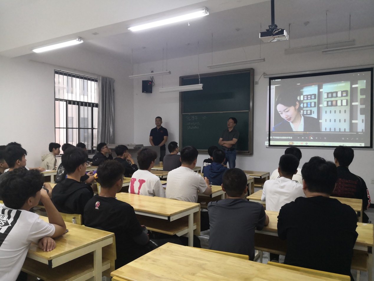 陈泽平副主任也通过视频和PPT向汽车制造与试验技术专业新生详细介绍了专业的各类情况。
