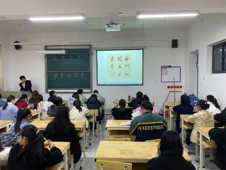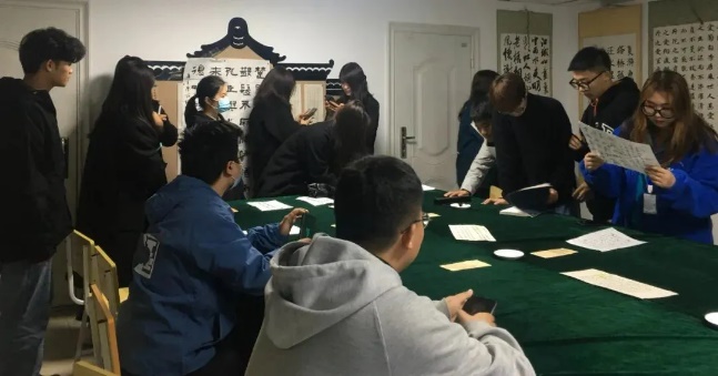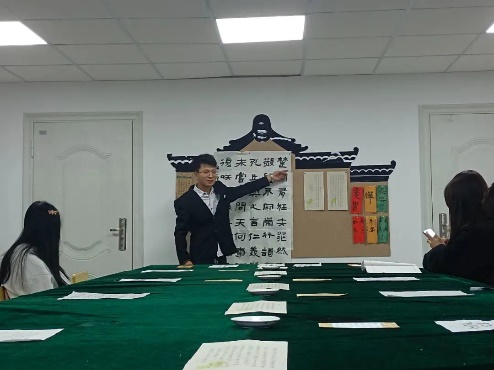 德信体育书法协会副会长王勇逐一点评了各位同学们的佳作,并对同学们积极参展的热情表示赞许。人文艺术公司文源书法协会副会长王雪也从其专业的角度对参展的作品进行了评析,并鼓励同学们积极参与书法创作,永远保持一颗热爱书法的初心。