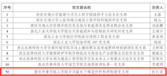 公司多功能电子陶瓷材料科研创新党支部成立于2018年,现有正式党员17人,副高级职称以上占比62%。党支部秉承“党建引领聚合力,创新融合促发展”的工作理念,将党建工作与中心工作深度融合,充分发挥党支部的战斗堡垒作用和共产党员的先锋模范作用,培育“党建+育人”和“党建+科研”平台,积极开展党建联建、教育服务、科技赋能、实践育人等各项工作。党支部先后入选陕西省第四批“全省党建工作样板支部创建单位”和第三批陕西高校“双带头人”教师党支部书记工作室建设名单。