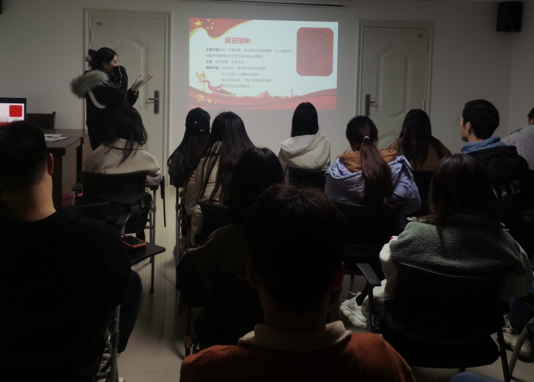 一幅幅图片,一句句真实的话语,让大家回顾了延安时期,以毛泽东为首的中国共产党人,面对“要么饿死,要么解散,要么自己动手丰衣足食”的严峻考验,创造和培育出一种不畏艰难困阻的伟大气概、精神风貌和工作作风——伟大的延安精神!建国初,上海交大537名师生积极响应党和国家“建设大西北”的号召,“打起背包就出发”,义无反顾地从黄浦江畔搬到渭水之滨,凭着对党的忠诚、对新中国的热爱,以及攻坚克难的毅力、潜心科研的坚守,创建了大西北第一个“硅谷”,培育和铸就了“胸怀大局,无私奉献;弘扬传统,艰苦创业”的“西迁精神”。周澳华同学向大家生动的讲述了延安精神以及西迁精神的来源,并说道:“这两种精神,皆是在三秦大地上形成的伟大革命精神,是滋养中国共产党人的精神食粮。”