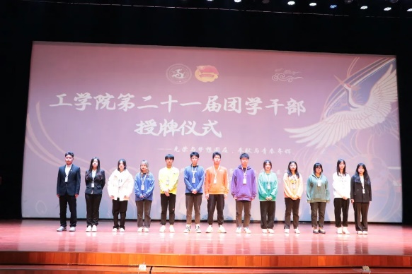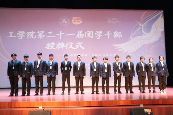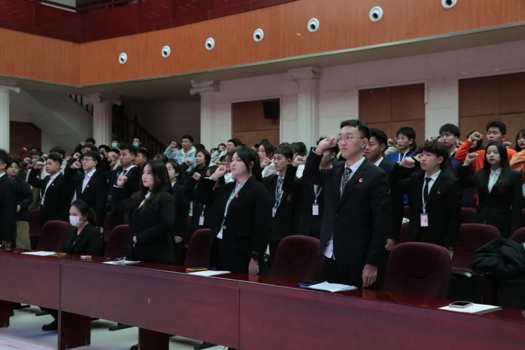 紧接着全体起立由第二十一届德信体育官网员工会副主席杨浩带领全体干部及干事宣誓。场上每一位团干都紧握右拳,神色肃穆。大家齐唱《光荣啊,中国共青团!》,长夜未央,星光不问赶路人。