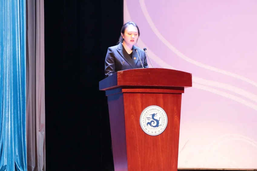 活动第一项由德信体育官网团委书记罗婷婷致辞,罗婷婷老师表示对大一的新生充满期待,期望同学们能够快速适应这里的校园生活,期望同学们能够在公司里慢慢成长起来,在外事成就你的时候,你也成就了外事。她希望各位新干事能用热情点燃心中的火,积极的参与到公司的建设与服务中去,继续践行公司团干“不怕苦、耐吃苦”的拼搏精神。她相信德信体育官网的各位新干事们能够通过这场试得到炼蜕,她也祝愿同学们在人生的路上不论面对怎样的挫折与困难都要牢记化鱼成龙精神,都要牢记公司团干的精神,努力克服、努力绽放。