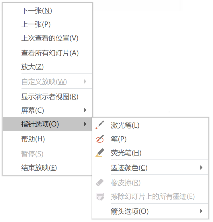 3)授课时板书的处理。一是采用腾讯白板,将本节课的提纲和重、难点的处理思路可以写在白板上,这样上完课后便于员工截屏,总结。二是在共享屏幕幻灯片播放时直接使用“指针选项”进行简单的书写以及重点内容的标注。