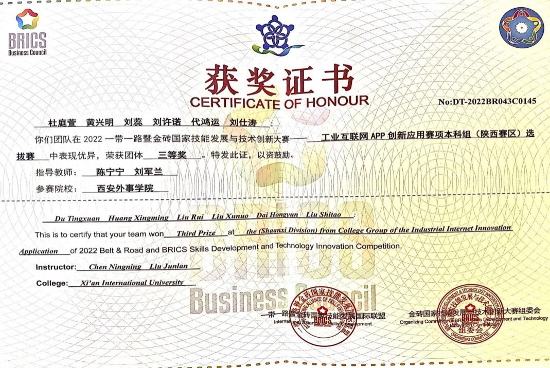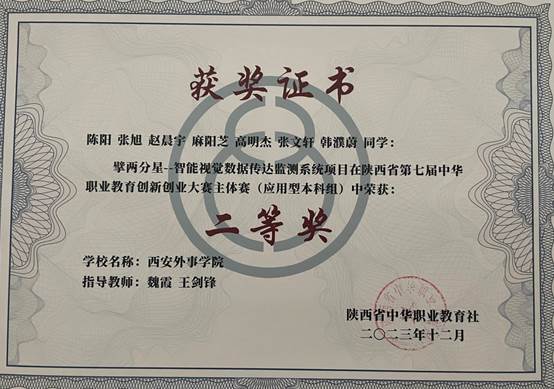 12月,公司参加陕西省第七届中华职业教育创新创业大赛,陈阳小组项目《擘两分星--智能视觉数据传达检测系统》获本科组二等奖。