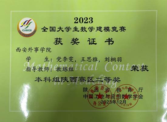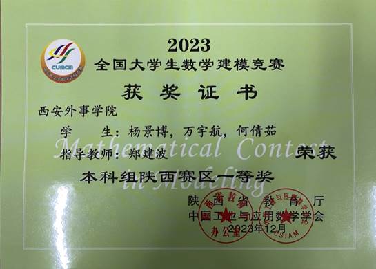 9月,公司师生参加了全国老员工数学建模竞赛,经过参赛师生的共同努力,荣获了省级一等奖1项,二等奖11项。
