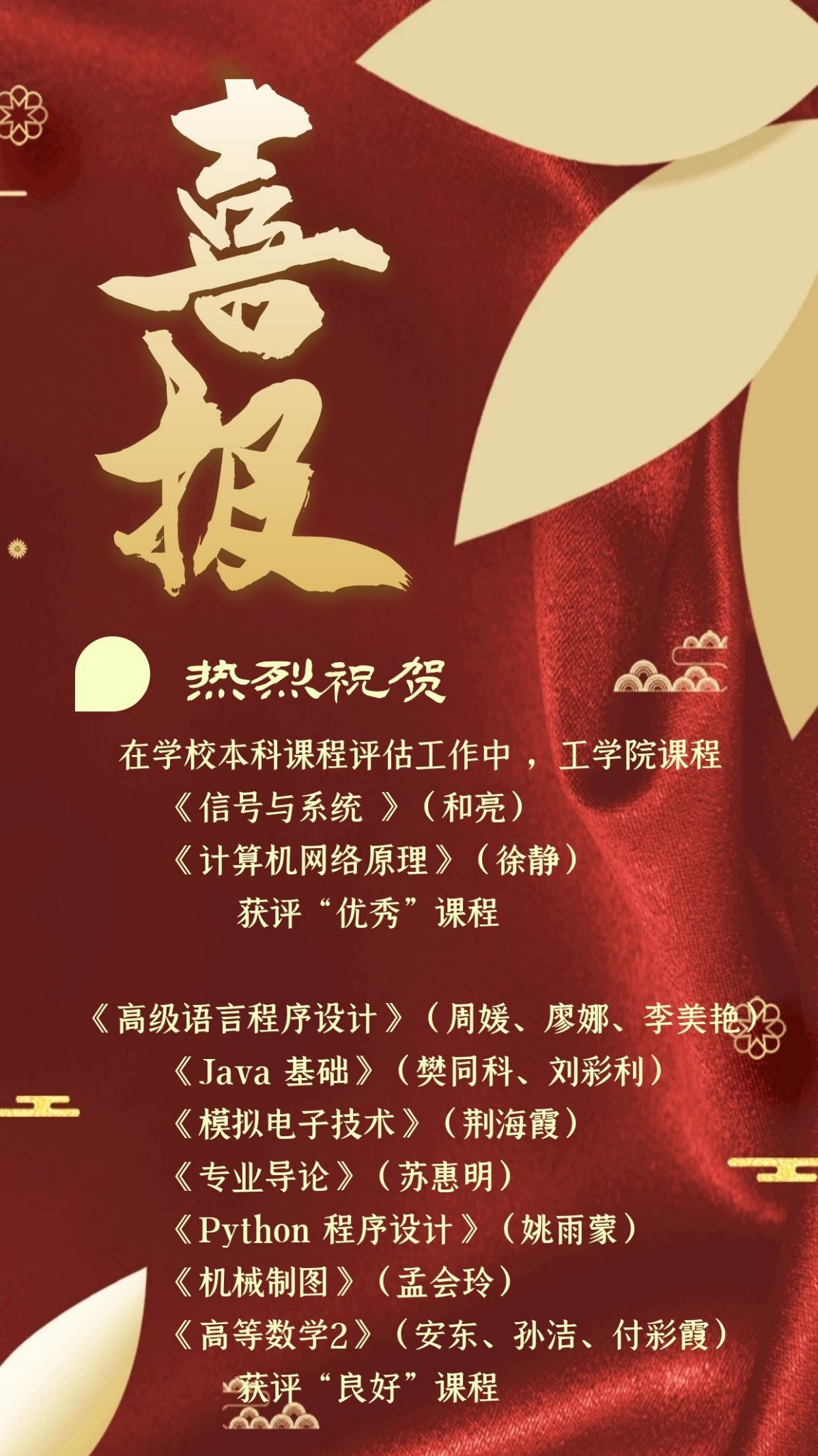 近日,在公司本科课程评估工作中,公司9门课程参评。经过校内外专家线上线下认真评审,全校获评“优秀”课程5门,其中公司获评“优秀”课程2门;全校“良好”的课程40门,其中公司获评“良好”课程7门。