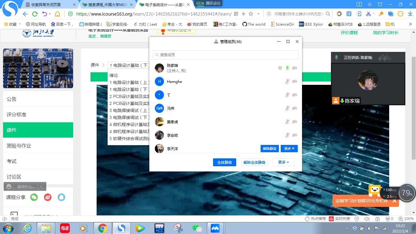 2022年1月4日上午十点,陈家瑞老师的《电路设计CAD》开课了,本课程主要讲解电路设计及软件使用相关知识,旨在隔离期间提升员工的工程实践能力与团队协作能力,为后续专业课的学习以及学科竞赛做充分的准备。