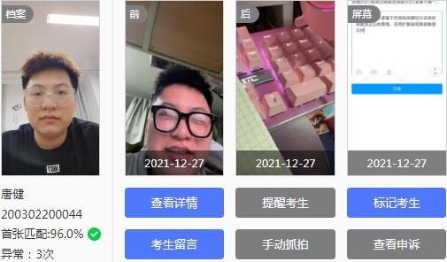 为保障考试的公平性、严肃性,老师们对试题类型、数量做了相应调整,使其便于线上考试,并进一步完善考试的流程和制度规则。由于每天核酸检测的时间不确定,公司要求员工随时做好考试的准备工作。公司教研办、授课教师、辅导员做好考试的沟通工作,三方协调并在当天通知第二天的考试科目,对于重修员工做到不漏一人;并在考试过程中利用线上考试系统的后台抓拍功能,实时监督员工的答题状态;要求员工在需要拍照上传的题目答案中写清楚班级、学号、姓名,要求答题纸要保留开学后上交,并设置了上传时间,最大程度的避免了抄袭。